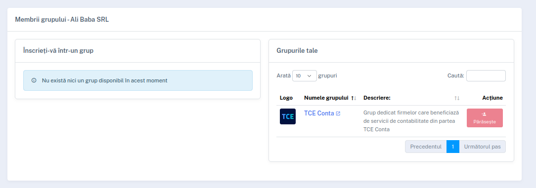 Permite afișarea firmelor înregistrate/înrolate în aplicație pe utilizatorul curent, precum și adăugarea firmelor noi care vor fi înregistrate/înrolate în aplicație